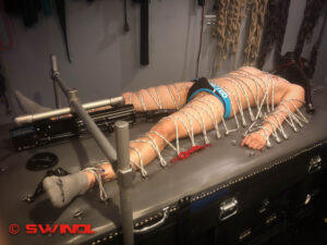 Love the lacing table with a fuck machine attached. Bondage with a punch.